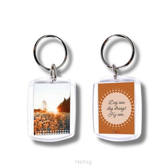 - Sleutelhanger met tekst: Dag aan dag draagt Hij ons