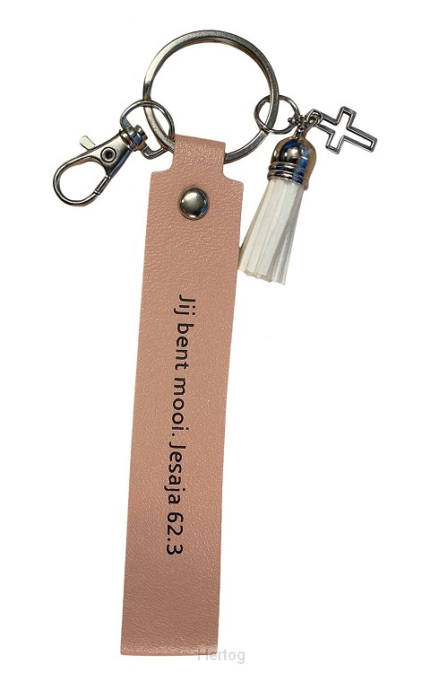 - Kunstleren sleutelhanger met opdruk: Jij bent mooi - Jes. 62:3