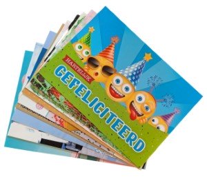 Pakje kaarten - Pakje met 10 enkele kaarten (blanco/gefeliciteerd) voor kinderen.
